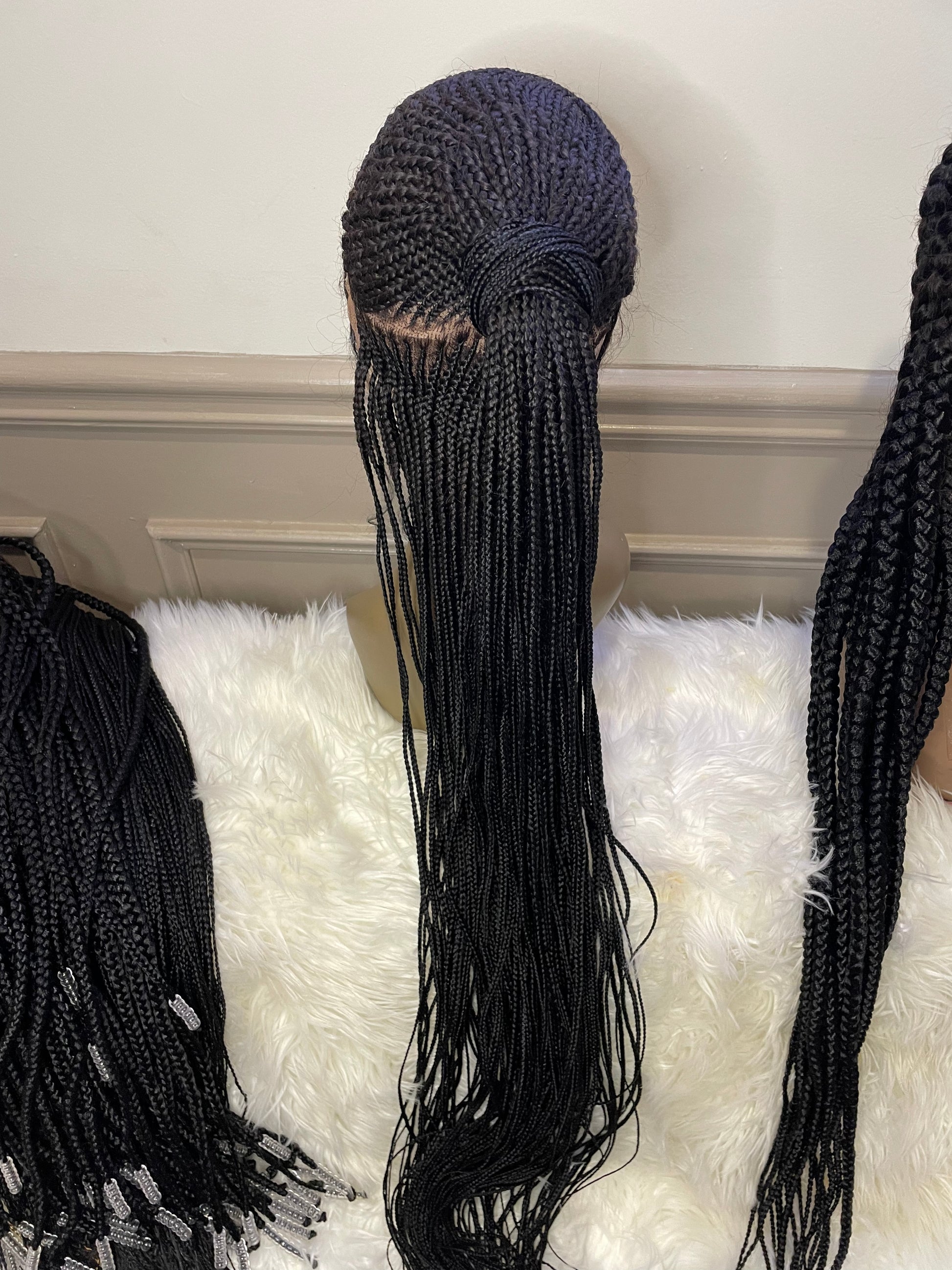 Wig comes in standard 24- 26". Can also be customized to any color of your choice